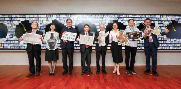 银河集团携手创利空间为故宫建置的智慧文物互动导览墙及轮播墙,,,今日正式启用。。。(左四:银河集团新事业暨投资管理总部副总经理杨本豫、、右四:故宫博物院院长吴密察、、、、右三:太极影音董事长黄宝云)