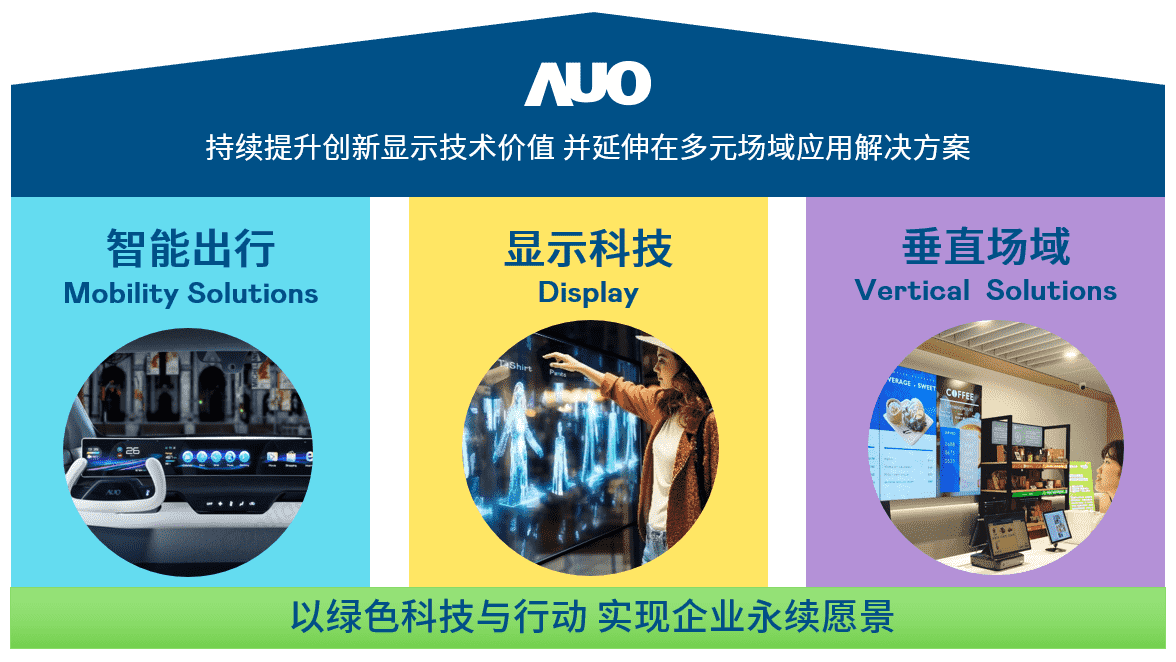 我们持续推动「双轴转型」,,,在精进显示技术附加价值(Go Premium),,与深化垂直市场应用(Go Vertical)的策略下,,对应银河集团的优势竞争力与趋势,,,,我们奠定显示科技、、、、智慧移动、、、、垂直场域三大永续营运支柱,,在显示技术领域的根基之上,,,延伸布局多元场域应用解决方案。。。将先进显示科技助力智慧移动及垂直场域发展,,,并以绿色科技与行动为实践,,,,在转型之路上贯彻永续经营之愿景。。。