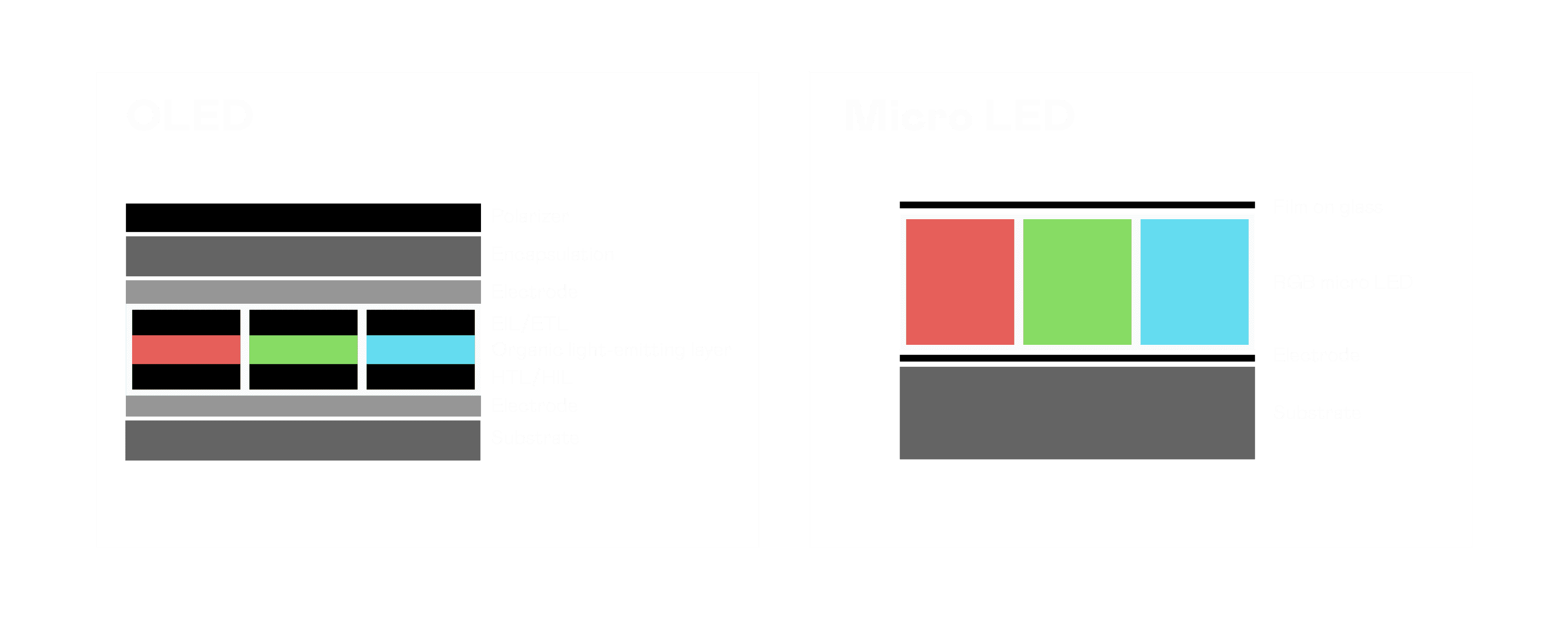 以 LED 做为显示画素,,,可让 LED 的发光效率发挥到极致,,,,从而让显示器具备优异的亮度表现,,不论是在户外或室内,,,均具备出众的显示效果。。同时,,,与使用有机材料的 OLED 相比,,LED 具备更稳定、、寿命更长的特性,,,不仅不会有画面烙印问题,,而且更不容易出现故障、、、坏点。。。。